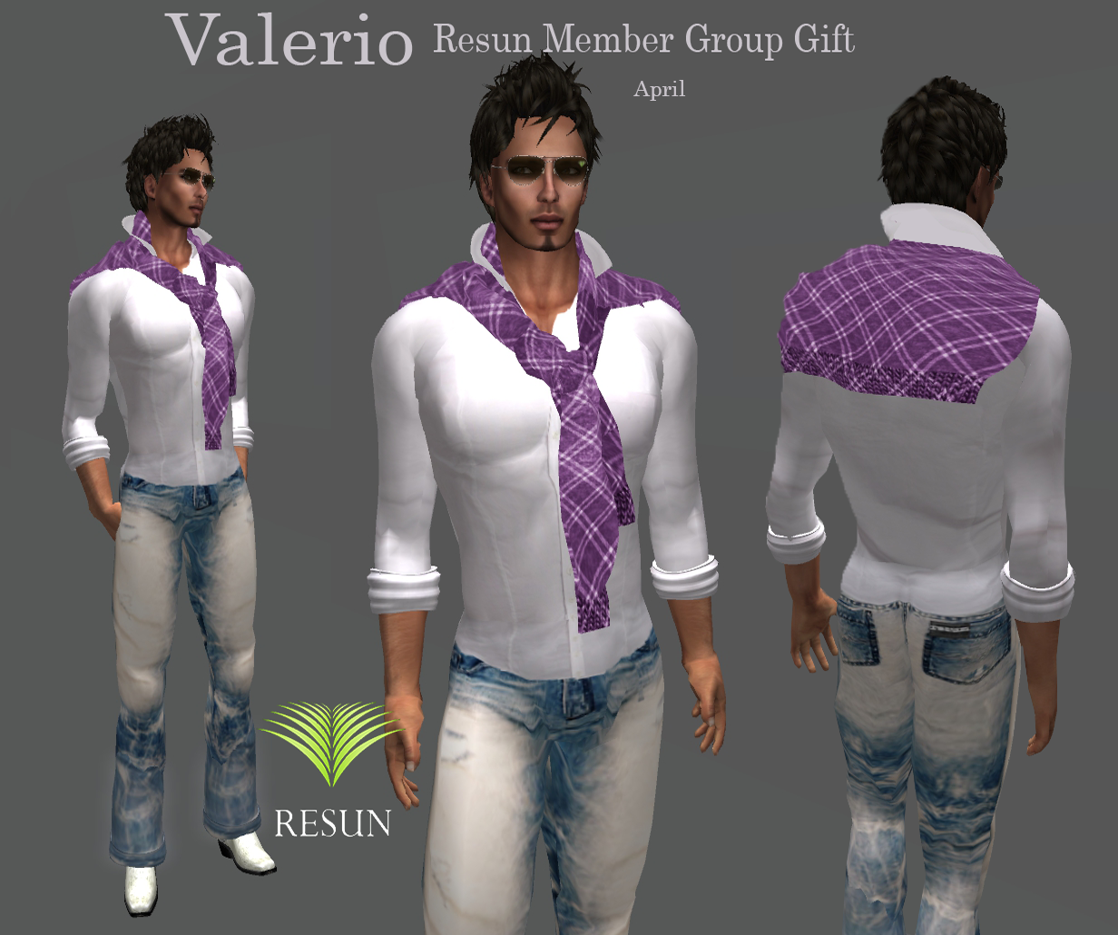 ◕ 'Valerio' Mens Outfit white shirt with collar and faded sexy blue jeans and light purple and white Argyle pattern sweater draped over the shoulders and with arms tied around the front breastbone. No trans Copy