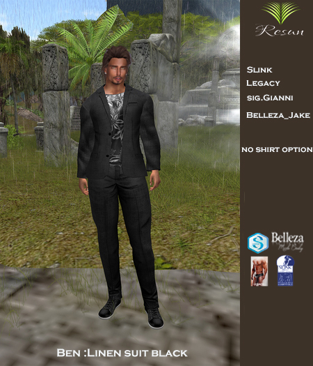 Sports suit for men with open blazer and shirt and untied tie with unbuttoned trousers and open belt that reveal the boxers.OUTFIT is compatible for avatar Mesh (Slink Male, Signature Gianni, Belleza Jake, Legacy Meshbody, Aesthetic, Inithium kario,Altamura)